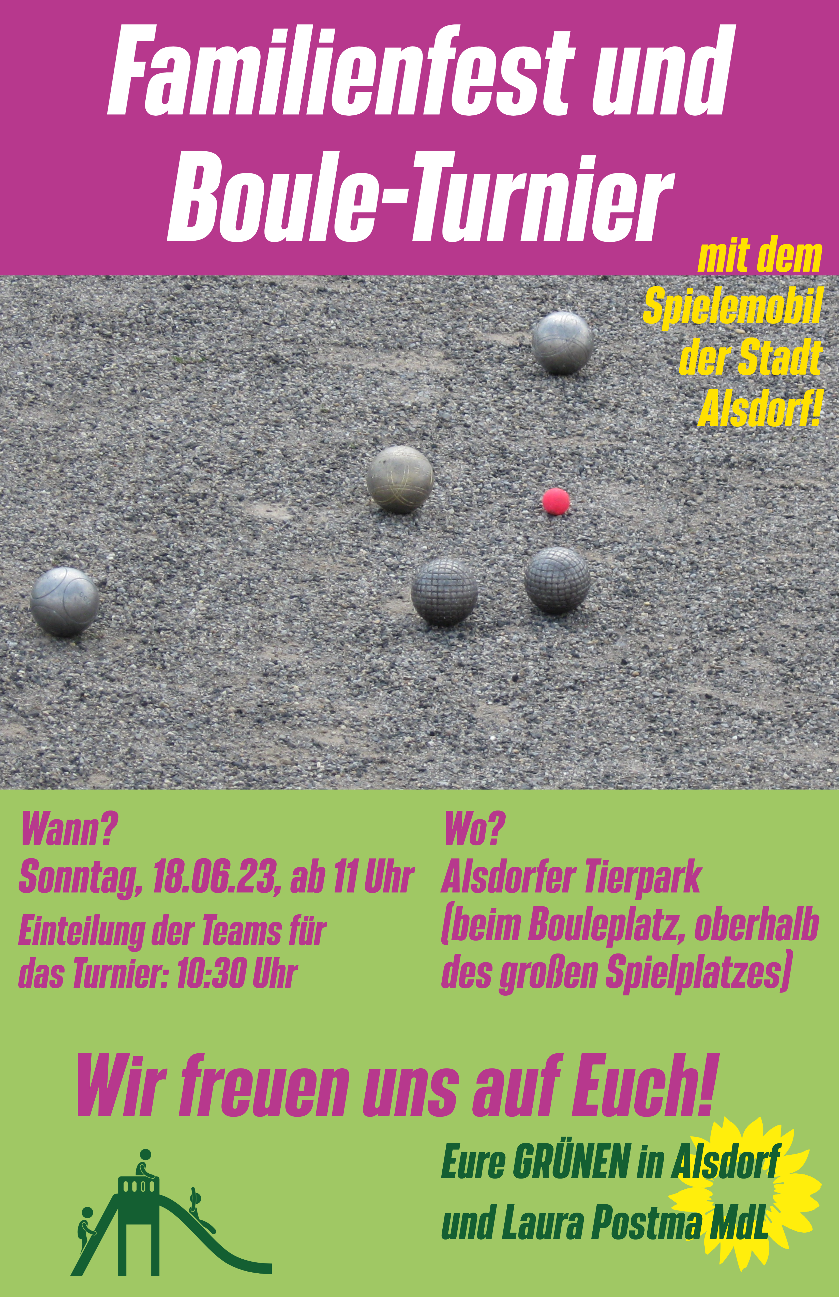 Tielnehmende am Boule-Turnier sollen bitte schon ab 10:30 vor Ort sein, damit die Teams eingeteilt werden können!