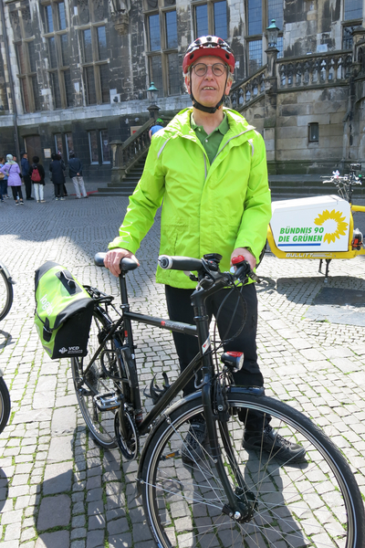 Viele Gespräche wurden auf Wochenmärkten und Plätzen in Aachen, Richterich, Herzogenrath, Kohlscheid, Laurensberg geführt. In der Aktionswoche vom 5. bis 10. Mai waren die GRÜNEN entlang der Strecke des geplanten Radschnellwegs Aachen - Herzogenrath präsent. Mit den Bürgerinnen und Bürgern wurde über Meinungen, Bedenken und Kritik diskutiert mit dem Ziel für den Schnellradweg zu werben. Die Aktionswoche endete mit einer gemeinsamen Radtour von GRÜNEN Bezirksvertreter/innen, Stadträten und Städteregionsmitgliedern von Herzogenrath nach Aachen auf dem geplanten Streckenverlauf.