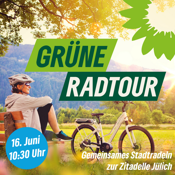 Wie schon im letzten Jahr laden die Grünen Stadtradeln-Teams aus dem Nordkreis und Stolberg an einem Sonntag im Aktionszeitraum zum Mitradeln ein. Hierbei sind ebenso Radelnde anderer Teams willkommen. Zentraler Treffpunkt ist in diesem Jahr der Euregiobahn-Haltepunkt Alsdorf-Annapark. Von hier aus geht es über Dörfer und an Burgen vorbei ins Jülicher Land. Ziel ist die Zitadelle Jülich. Der Rückweg führt über den Bahntrassenradweg nach Alsdorf.