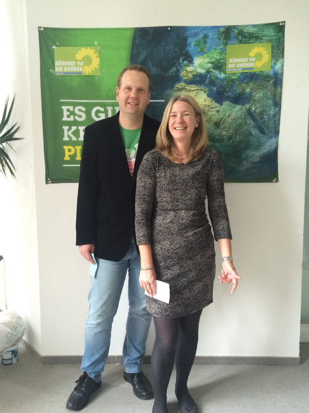 Vorschläge für die Preisträger kommen von den Bürgern selbst. Diesmal kam der Vorschlag von der urgrünen Anka Erdweg. Unter dem Motto "Gutes Kaufen, gutes Tuen" stellte sie das Projekt vor. Nach den Reden von und der Preisverleihung durch die beiden Ortsvorsitzenden Uschi Küpper und Wolfgang Wetzstein ging es bei Sekt, Saft und Schnittchen über in den geselligen Teil, untermalt von "La Famille" einem Trio mit alten Instrumenten, darunter - besonders ungewöhnlich - ein Dudelsack. Die Preisträger erhalten 500 €, wevon der Ökofond der Grünen NRW die Hälfte davon übernimmt. Eine rundrum gelungene und sympathische grüne Veranstaltung.