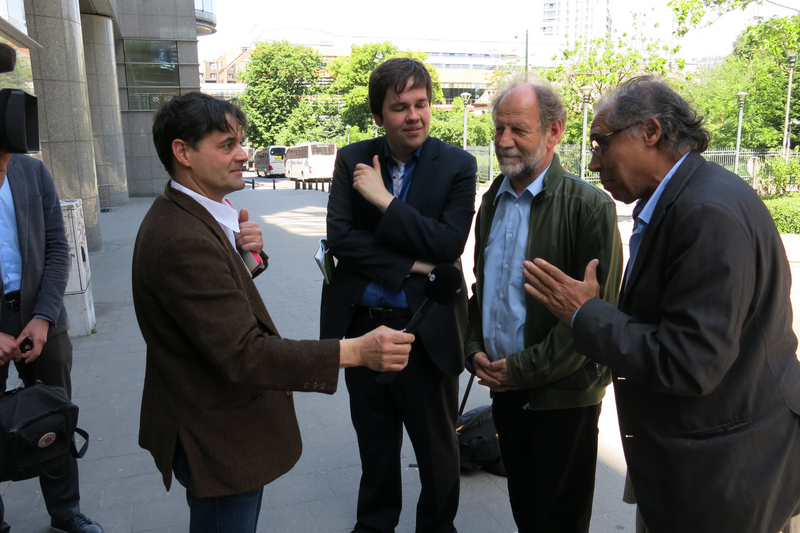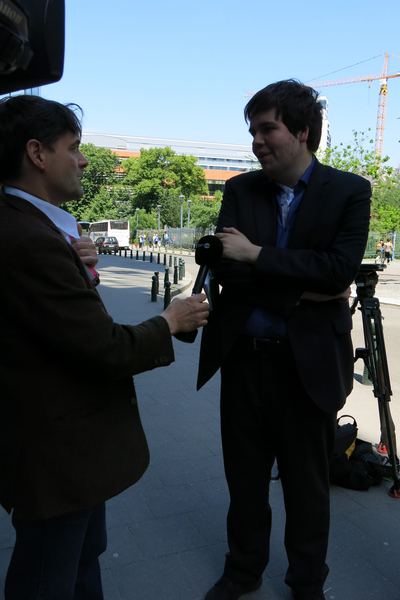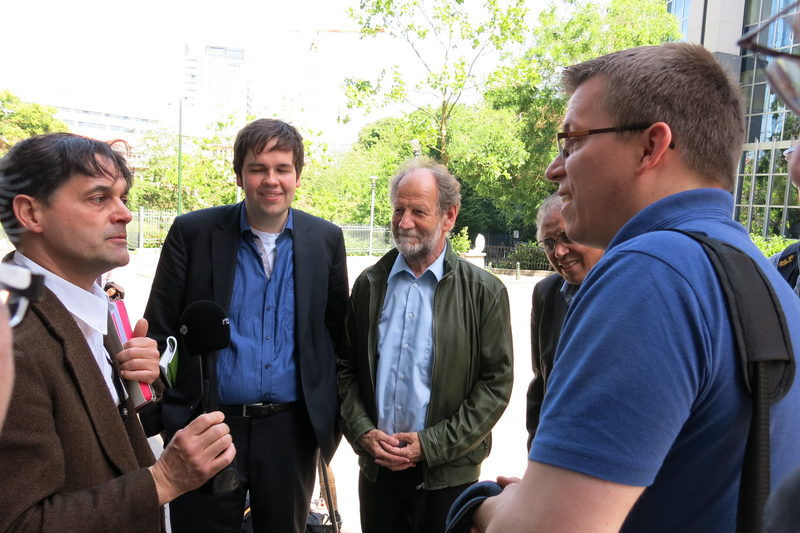 Lars in einem Spontan-Interview zum Thema Tempolimit auf deutschen Autobahnen. Im Hintergrund Michael Cramer MdP[/caption]