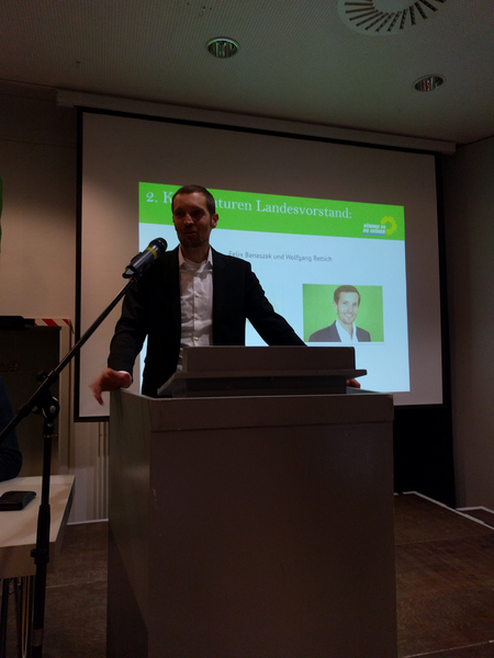 Der Diplom Sozialwissenschaftler Wolfgang Rettich, ist derzeit hauptamtlicher Schatzmeister der NRW-Grünen und sitzt im Bochumer Stadtrat. Er sprach über interne Erneuerungsprozesse, mit denen er die Partei neu aufstellen wollte. "Wir brauchen eine bessere Wissensorganisation und strategische Vernetzung zwischen den Landesarbeitsgemeinschaften und den Kommunen. Außerdem brauchen wir eine neue Debattenkultur und mehr Transparenz. Wir müssen raus aus dem Hinterzimmer und die politischen Konflikte mehr auf der öffentlichen Bühne austragen."