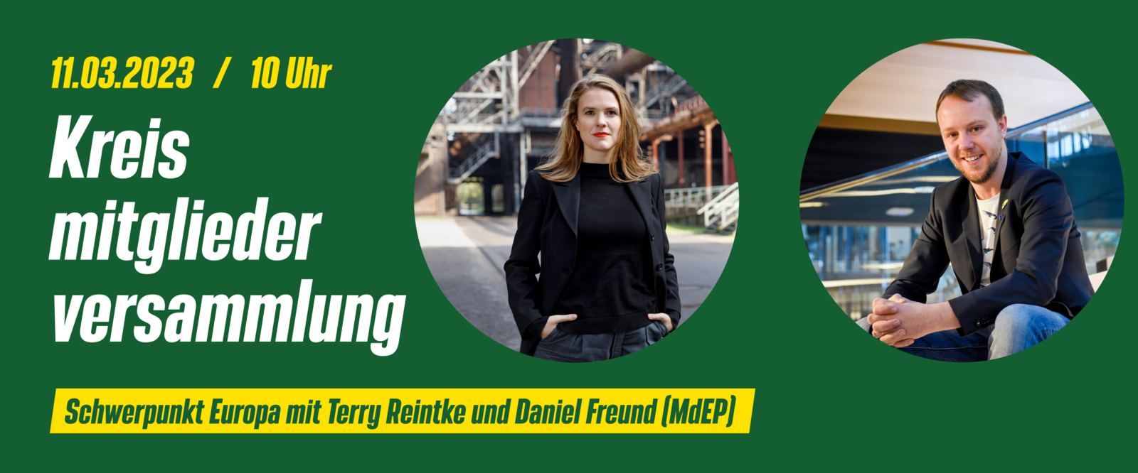 Terry Reintke, Co-Vorsitzende der Grünen/EFA-Fraktion im europäischen Parlament und Daniel Freund MdEP, unter anderem Leiter des Verfassungs- und Haushaltskontrollausschusses, Verhandlungsführer zur unabhängigen Ethikbehörde und Vorsitzender der fraktionsübergreifenden Arbeitsgruppe gegen Korruption. Im Anschluss entscheiden wir über die Vergabe eines oder mehrerer Voten für die Grüne Listenaufstellung für die Europawahl.