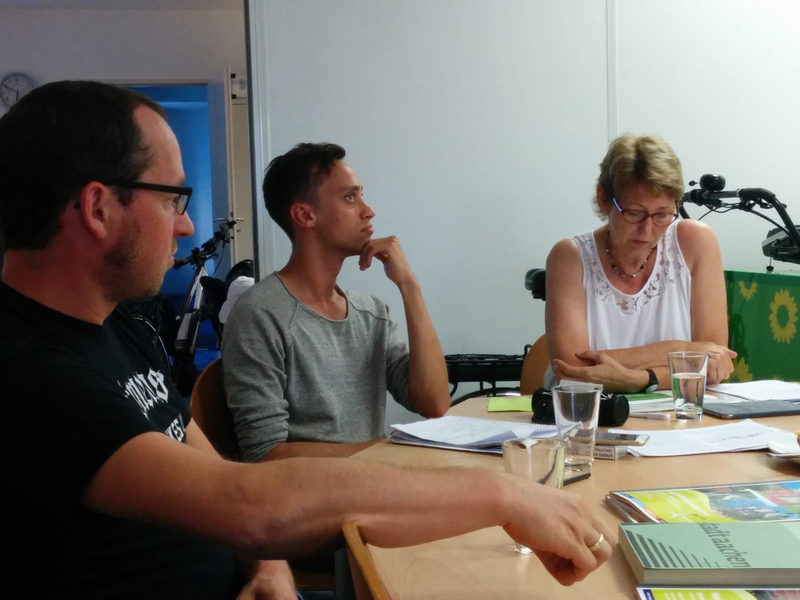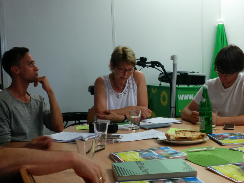 Die GRÜNE Jugend Aachen lud ein zum Gespräch: Tim Achtermeyer, ehemaliger Schatzmeister der GRÜNEN Jugend NRW und Kandidat der GRÜNEN Jugend für die Landtagswahl 2017 und Karin Schmitt-Promny, GRÜNE Landtagsabgeordnete, zuständig für interkommunale Zusammenarbeit diskutierten u.a. mit dem finanzpolitischen Sprecher der GRÜNEN in Aachen Hermann Josef Pilgram.