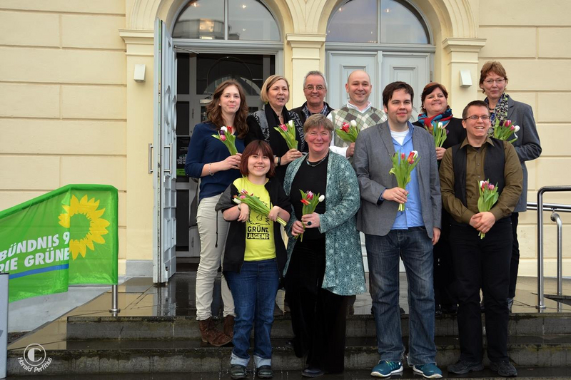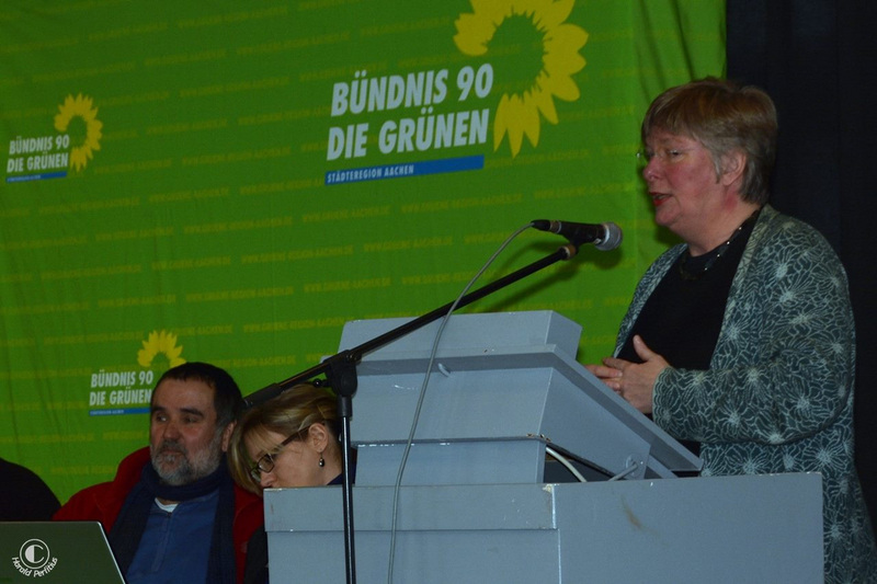 Gisela Nacken (v.2.l.) und Alexander Tietz (v.2.v.r) sind die neuen Sprecher des KV's. Damit lösten sie Reiner Priggen und Bettina Herlitzius ab, die nicht wieder kandidierten. Wiedergewählt als stellvertretende Vorsitzende wurden Dina Gratz (Fraktionsvositzende in Stolberg/hinten links), Ingrid von Morandell (Fraktionsvorsitzende/h.2.v.l), Werner Krickel (Fraktionsvorsitzender der Städteregionstagsfraktion/h.3.v.l), Karin Schmitt-Promny (Städteregionstagsmitglied/hinten rechts), Lars Lübben als Kassierer (Sprecher im Sozialausschuss/vorne rechts). Neu hinzugekommen sind Marcel Offergeld (Kassierer im OV Herzogenrath/h.4.v.r), Katrin Feldmann (Sprecherin aus dem OV Aachen/h.2.v.r) und Eva Malecha (Mitglied im Städteregionstag und Vorsitzende des Inklusionsbeirates/v.l.).