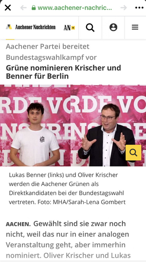 Mit über 120 Mitgliedern fand vergangenen Freitag unsere größte Mitgliederversammlung in unserer 40 jährigen Geschichte statt. Diese fand aufgrund der aktuellen Pandemielage digital statt. Im Wahlkreis Aachen I konnte Oliver Krischer sich gegen Alexander Tietz-Latza durchsetzen. Im Wahlkreis Aachen II kandidierte Lukas Benner ohne Gegenkandidatur. Neben der Nominierung für die Wahlkreise haben unsere Mitglieder auch Voten für eine aussichtsreiche Kandidatur auf der NRW-Landesliste an Oliver und Lukas vergeben.