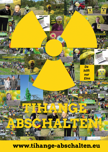 Doch unser Protest geht weiter, nämlich online. Und ihr könnt alle mitmachen. Wir sind dabei, ein Protestplakat zusammen zu stellen. Dafür brauchen wir Bilder und Videos mit eurem ganz persönlichen Protest gegen Tihange. Diese werden in einer Collage zum Protestplakat zusammen gestellt. Das Plakat wird es anschließend sowohl in gedruckter Form als auch Online geben.