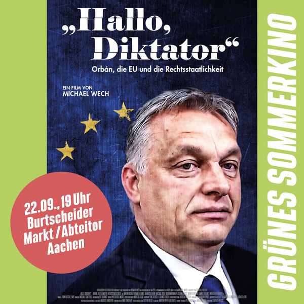 Gemeinsam mit dem Europaabgeordneten Daniel Freund und unserem Bundestagskandidaten veranstalten wir ein Open Air Kino und zeigen den Film "Hallo Diktator" über Viktor Orban.