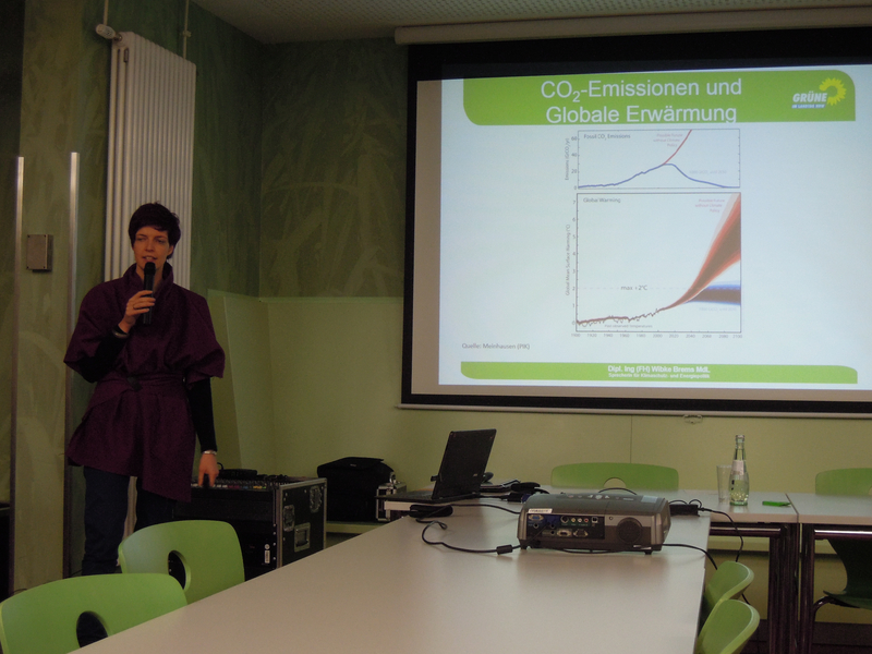 "NRW kommt beim Klimaschutz eine bedeutende Rolle zu" lautete die Botschaft von Wibke Brems, Dipl. Ing. Elektrotechnik und Sprecherin der GRÜNEN für Energie- und Klimapolitik im Landtag NRW. "Mit einem CO2 Ausstoß von 14,8 Tonnen pro Kopf im Jahr erzeugt NRW 1/3 der deutschen C02 Emissionen. Im Vergleich dazu liegt die USA mit 17 Tonnen pro Kopf im Jahr nur leicht darüber. Ohne bessere Wärme- und Energieeffizienz ist der Klimaschutz in NRW nicht möglich."