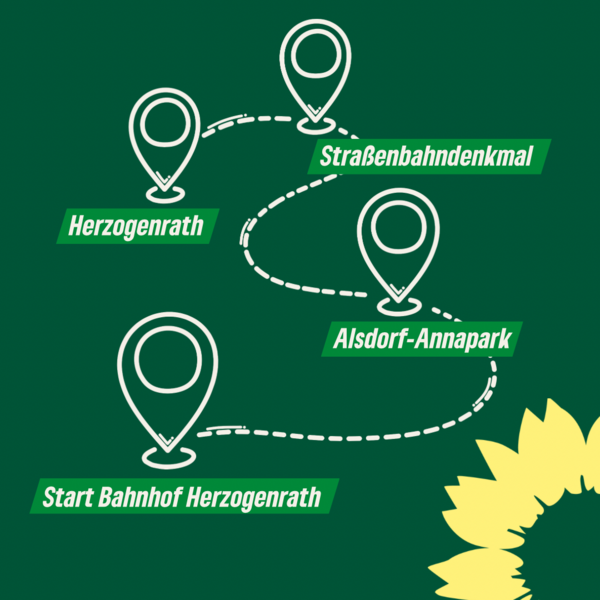 Die traditionelle „Sommerradtour“ des Kreisverbands Aachen von Bündnis 90/Die Grünen findet in diesem Jahr zum Herbstbeginn statt. Hierzu lädt die Partei alle Interessierten herzlich ein. Gestartet wird in diesem Jahr am Sonntag, 29. September, um 10:20 Uhr am Bahnhof Herzogenrath. Ein möglicher zweiter Treffpunkt zum Mitradeln ist um 11:00 Uhr am Euregiobahnhaltepunkt Alsdorf-Annapark. Die Uhrzeiten sind auf den Fahrplan der Euregiobahn abgestimmt, so dass eine Anfahrt mit der Bahn möglich ist. Die gesamte Strecke ist etwa 35 km lang, flach und gut zu radeln.