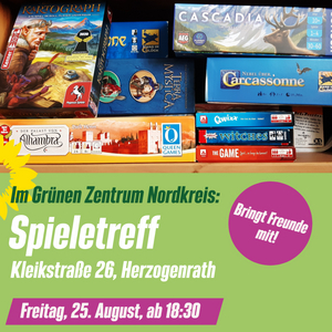 Der dritte Spieletreff findet statt am: 25.08.2023, ab 18:30 im Grünen Zentrum Nordkreis (Kleikstraße 26 in Herzogenrath).