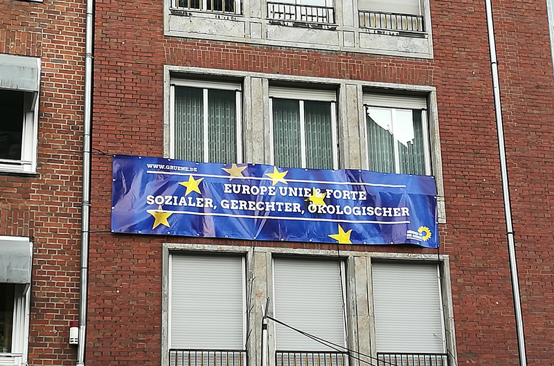 Heute haben die Bundeskanzlerin Angela Merkel und Frankreichs Staatschef Emmanuel Macron einen neuen Freundschaftspakt in Aachen besiegelt. Aus diesem Grund haben die GRÜNEN in Aachen ein Banner mit der Aufschrift „Europe unie & forte - sozialer, gerechter und ökologischer“ vor dem Aachener Rathaus aufgehängt.