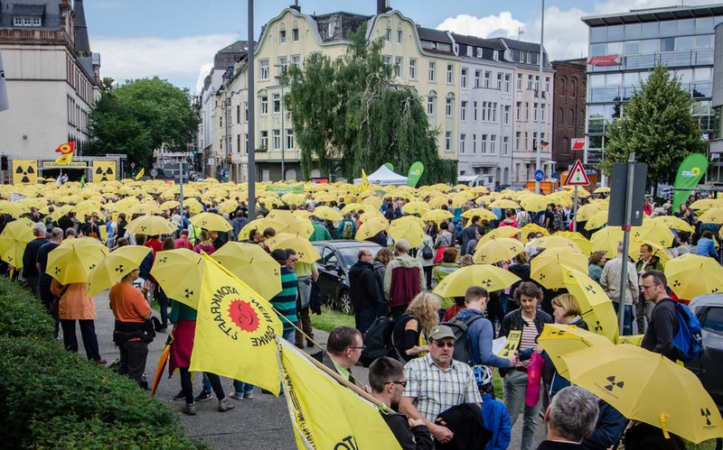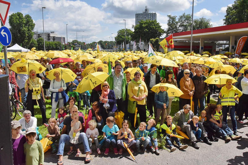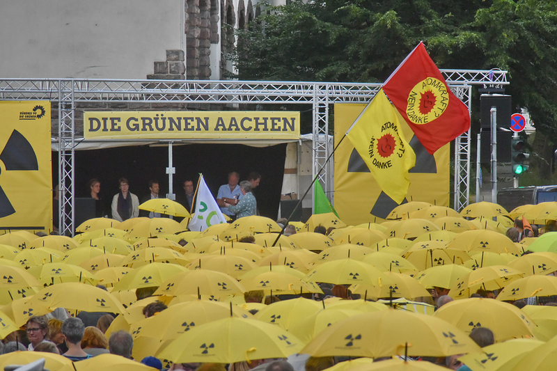 Ein Meer aus fröhlich leuchtenden gelben Schirmen mit ernst gemeintem Aufdruck: Abschirmen unmöglich – da hilft nur Abschalten! Diese Botschaft gegen Atomenergie schickten etwa 4.000 Menschen am Sonntag, 26.6.16, vom Aachener Europaplatz aus über die Grenze des Dreiländerecks. Anbei einige Bilder und Videos der gelungenen Aktion. Den ausführlichen Presseartikel gibt es auf www.gruene-aachen.de