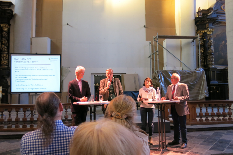 In Einem sind sich die Diskutanten einig: Ein entscheidender Machtfaktor, um das System der Nutztierhaltung zu verändern, ist der Verbraucher. Denn dieser demonstriert seine Macht mit jedem Kauf. Um die Entscheidungsgewalt der Verbraucher zu stärken müsse es mehr Transparenz an der Ladentheke geben. Seitdem es die Kennzeichnung von Eiern aus Käfighaltung gebe, sei deren Konsum drastisch zurück gegangen, so Dr. Griese. Deshalb müsse es weitere politische Maßnahmen geben, zum Beispiel die Tierhaltungsform auch auf Frischfleischverpackungen zu drucken, die Tierschutzlabels zu unterstützen und den ökologischen Landbau weiter zu fördern.