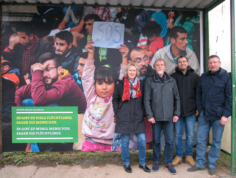 Die Großflächenplakate sind Teil der Integrationskampagne mit dem Titel "Beti Betak". Das ist Arabisch und bedeutet "Mein Haus ist dein Haus". "Als reiches Industrieland wollen wir auf der einen Seite Menschen in Not unterstützen. Auf der anderen Seite bedeutet das auch, dass unsere Regeln genauso für die Menschen gelten, die zu uns kommen," so Alexander Tietz-Latza, Sprecher des Kreisverbandes und Direktkandidat (Aachen-Land) der GRÜNEN für die Bundestagswahl.