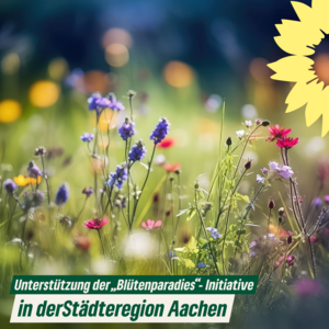 „Der Städteregionsausschuss beschließ das Projekt „Blütenparadies“- Initiative in der Euregio mit „5.000,- €“ in ihrem Vorhaben, neue Lebensräume für die wichtigen blütenbesuchenden Insekten in der StädteRegion Aachen zu schaffen und den Artenverlust aufzuhalten, zu unterstützen.“