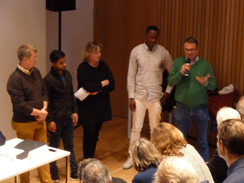 Wie wichtig die Bildungsmöglichkeiten für Flüchtlinge sind, verdeutlichten zwei junge Männer aus dem Publikum. "Eine Ausbildung ist für mich wie ein Paradies. In Guinea gibt es keine Ausbildung", meinte ein junger Mann aus Guinea. Und ein junger Mann aus Afghanistan ergänzt: "In Afghanistan kannte ich keine Schule. Die Schule in Deutschland ist schwer, aber ich werde das schaffen, weil ich das will." Diese Beispiele zeigen, dass es sich lohnt in Ausbildung zu investieren, so Hilde Scheidt.